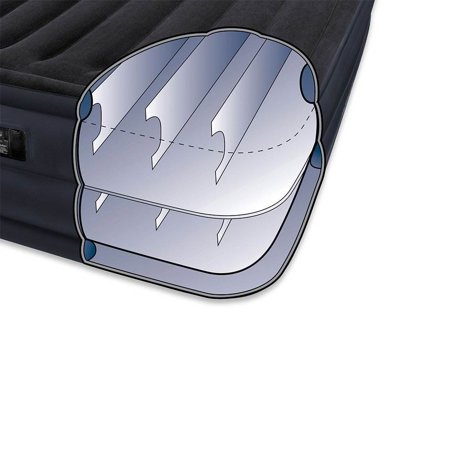 Meaning the intex air bed stays company for a long time than most different airbeds. Plush dual air pillow top for added comfort. Inner wave beam construction provides for both comfort and added support and the waterproof flocked sleeping surface is easy to clean Inflatable queen airbed for home use. Waterproof flocked top with vinyl beams.